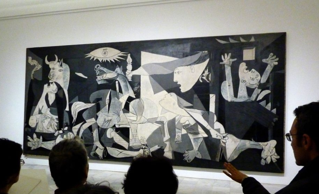 Pikasovo crno-belo remek-delo prikazuje nasilje napada koji su izveli nemačka Kondor legija i italijansko vazduhoplovstvo 26. aprila 1937. tokom Španskog građanskog rata. Italija je bila saveznik španskog generala Fransiska Franka, a napad je bio rani eksperiment u onome što će ubrzo postati uobičajena praksa u ratovanju: vazdušno bombardovanje civila.